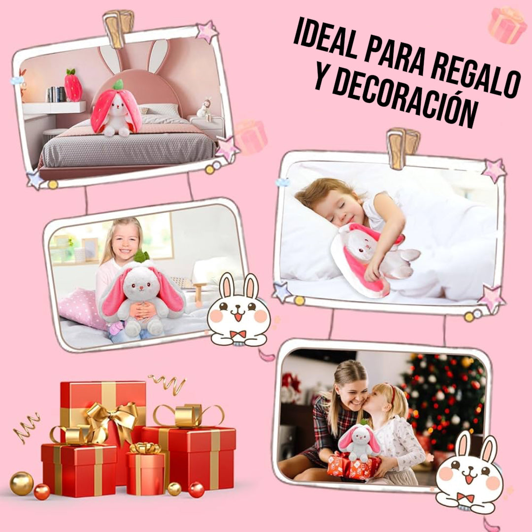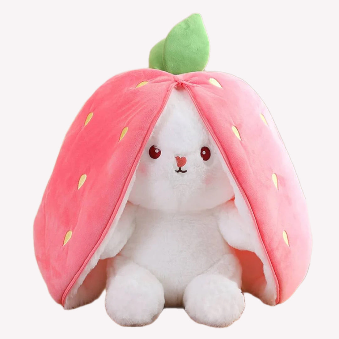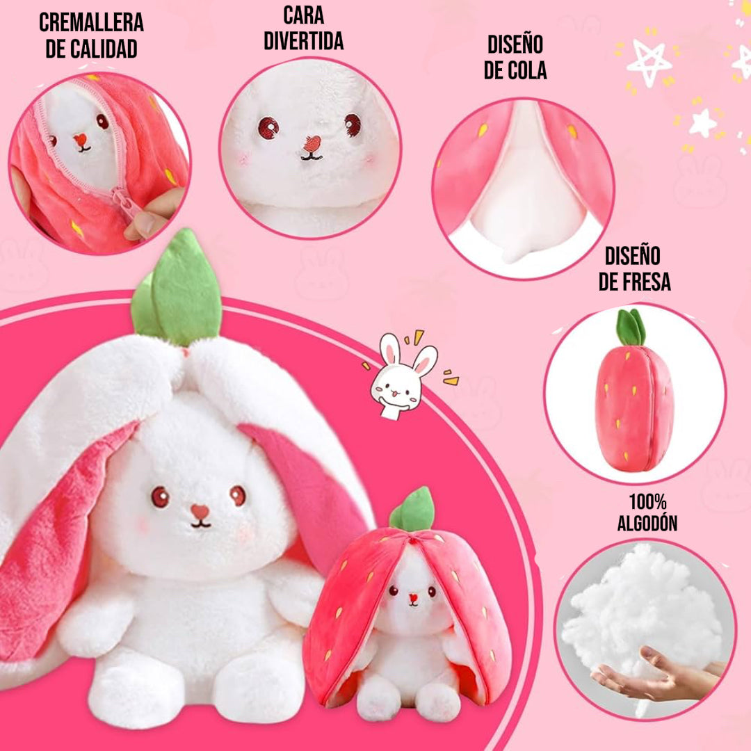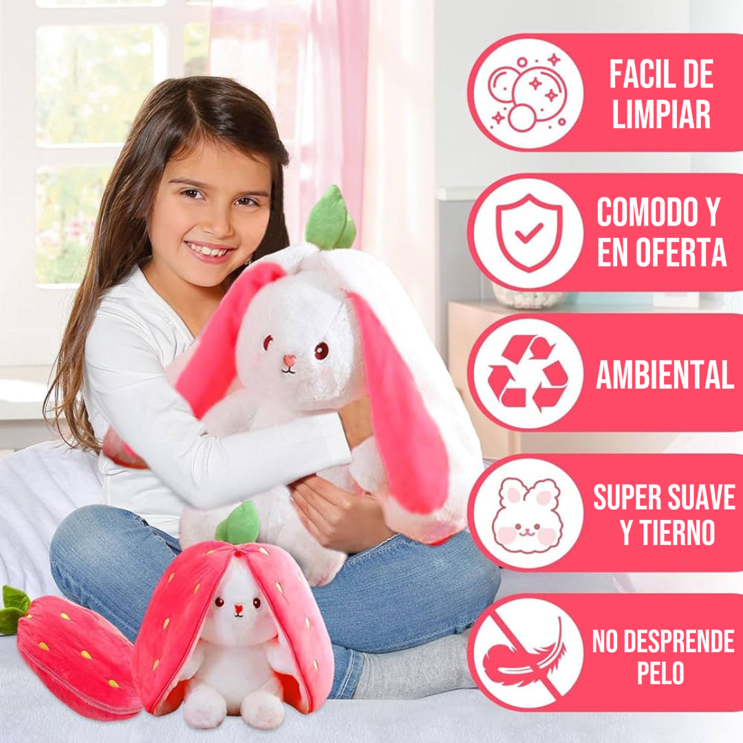 El conejito esponjoso se transforma en una fresa o zanahoria de peluche. Puede usarse como una almohada acogedora y acurrucarse junto a él. Cabe fácilmente en tu bolso, así que puedes llevarlo a todas partes.